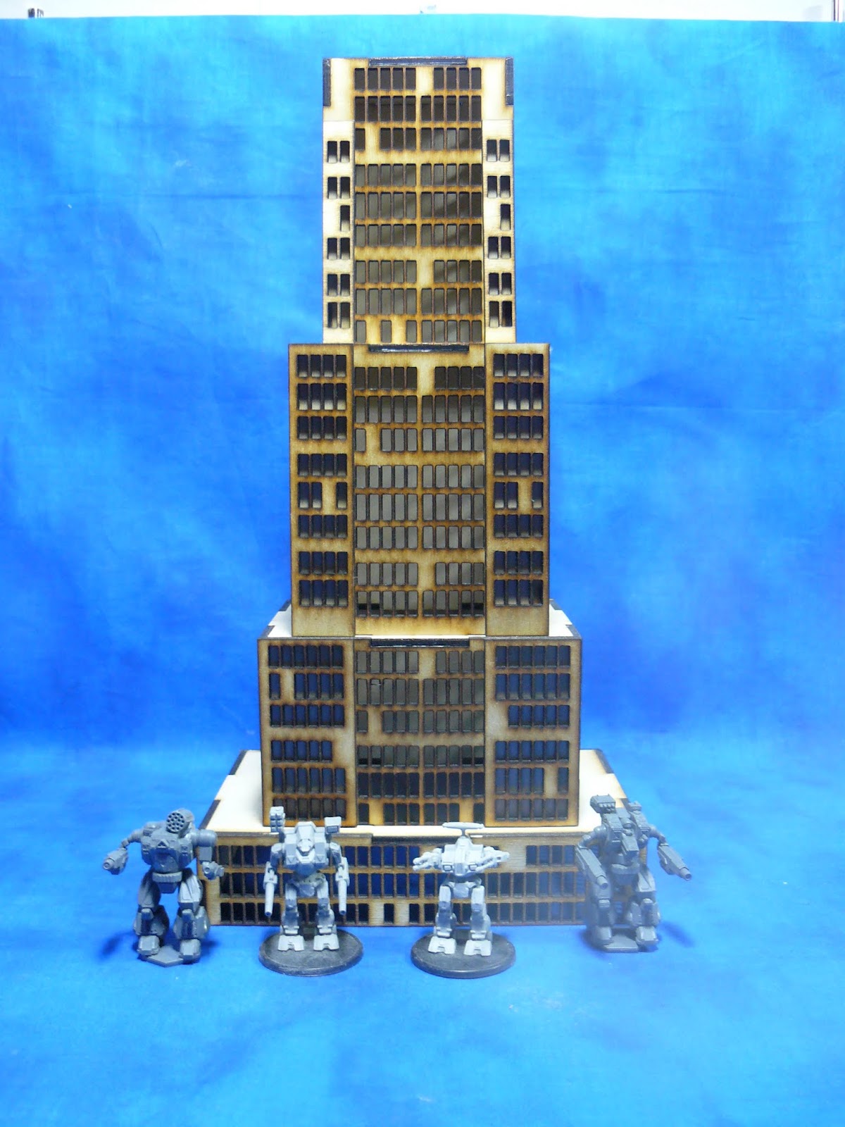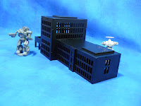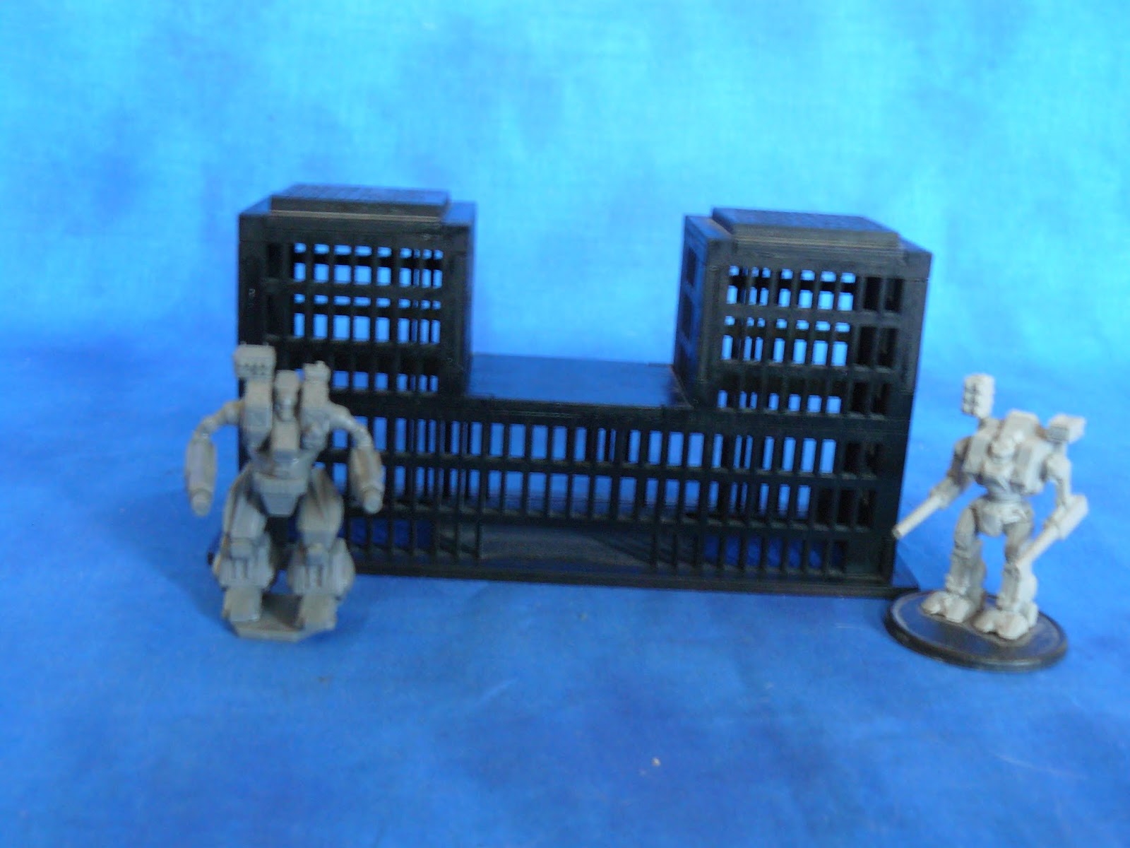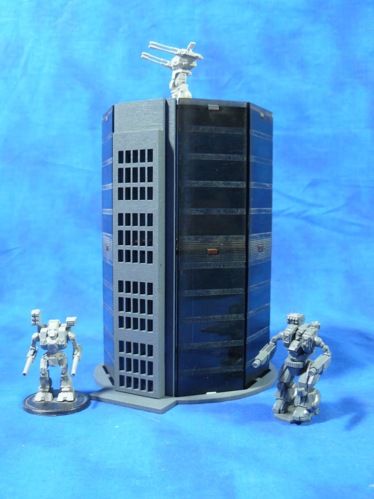 The Administration building is a 2 level building with a twist. The large lower level has plenty of room for placing mechs on top of it while still granting cover. The upper section brings the total story count to 9 making it tall enough to block some flyers.