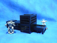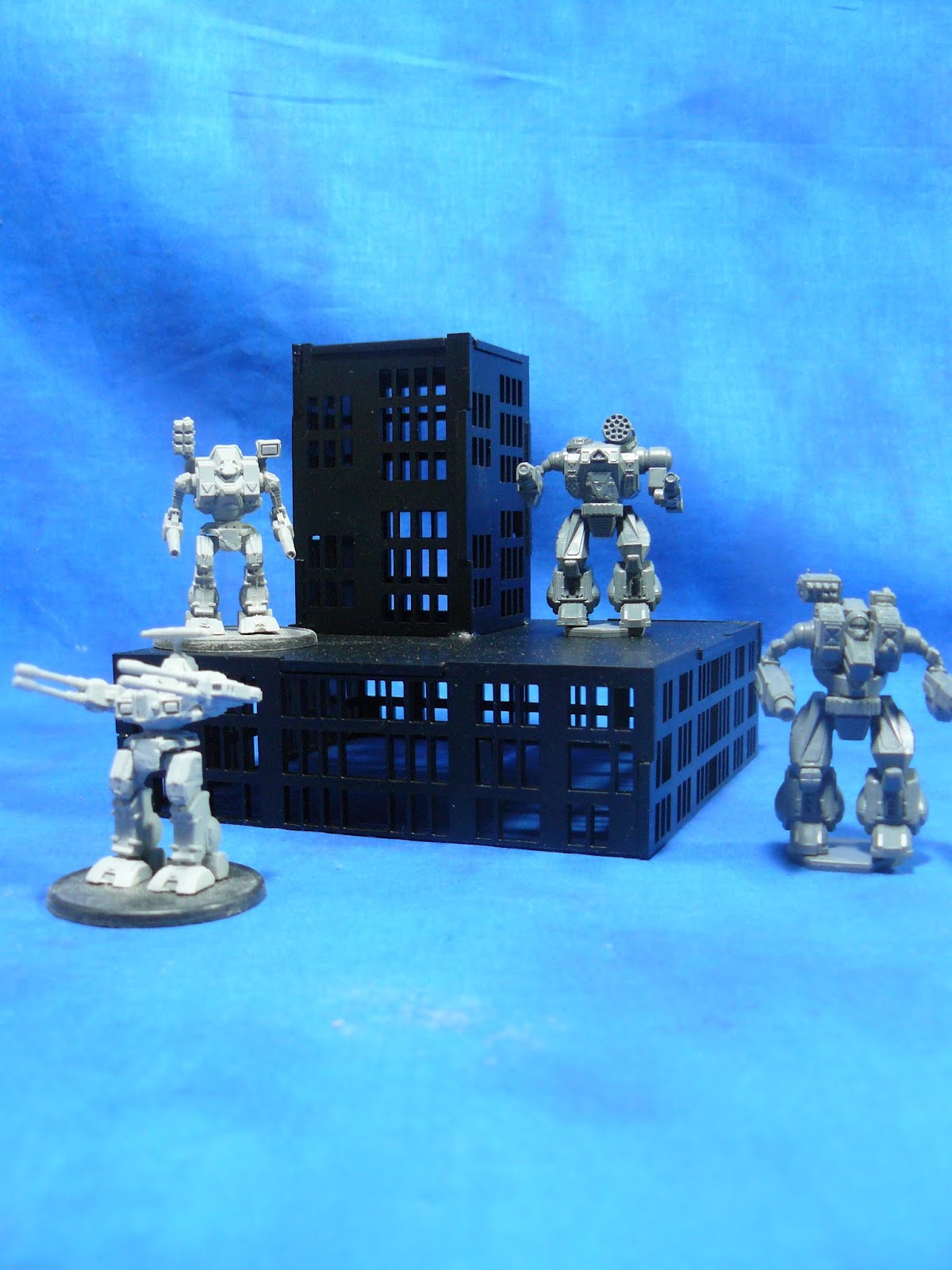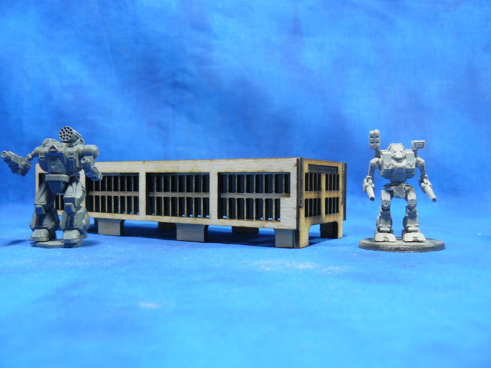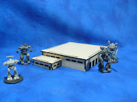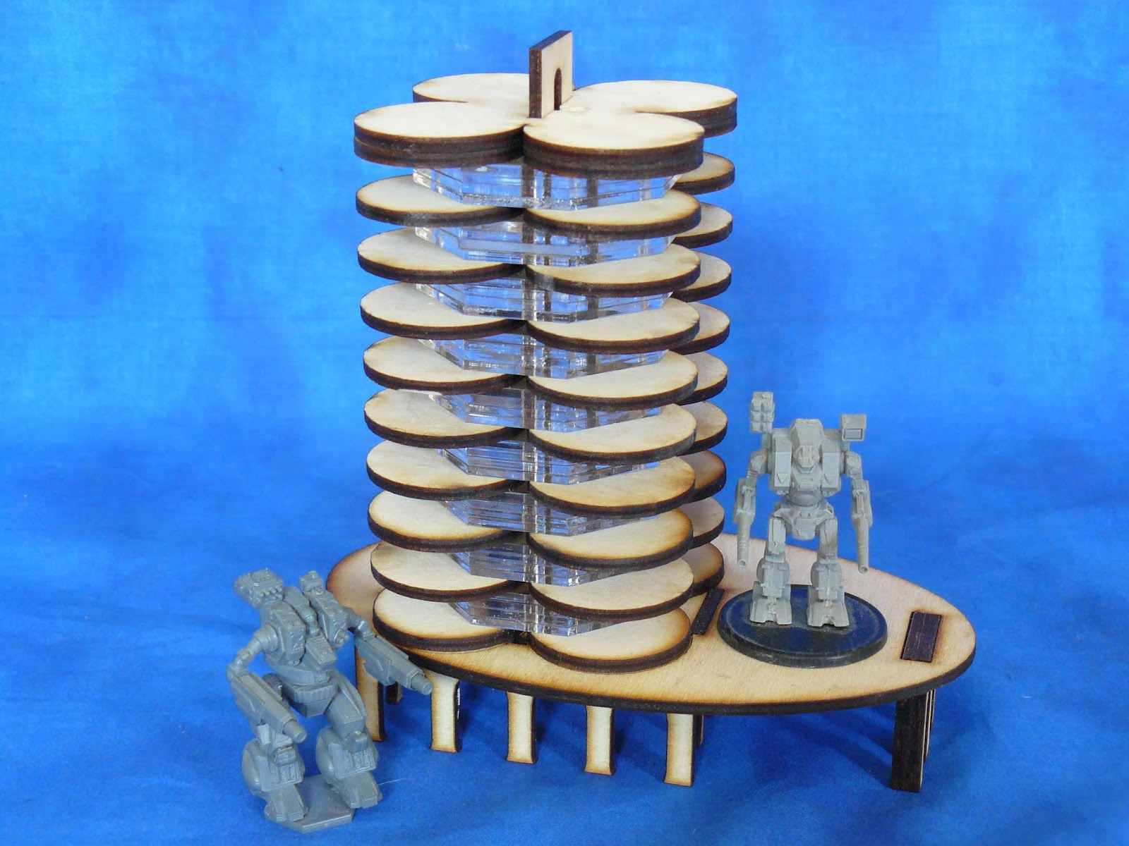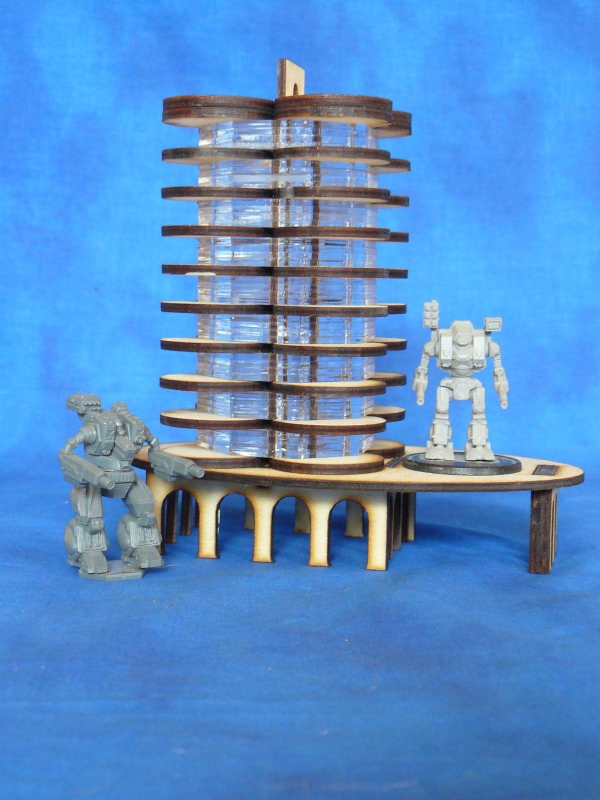 The Administration building is a 2 level building with a twist. The large lower level has plenty of room for placing mechs on top of it while still granting cover. The upper section brings the total story count to 9 making it tall enough to block some flyers.