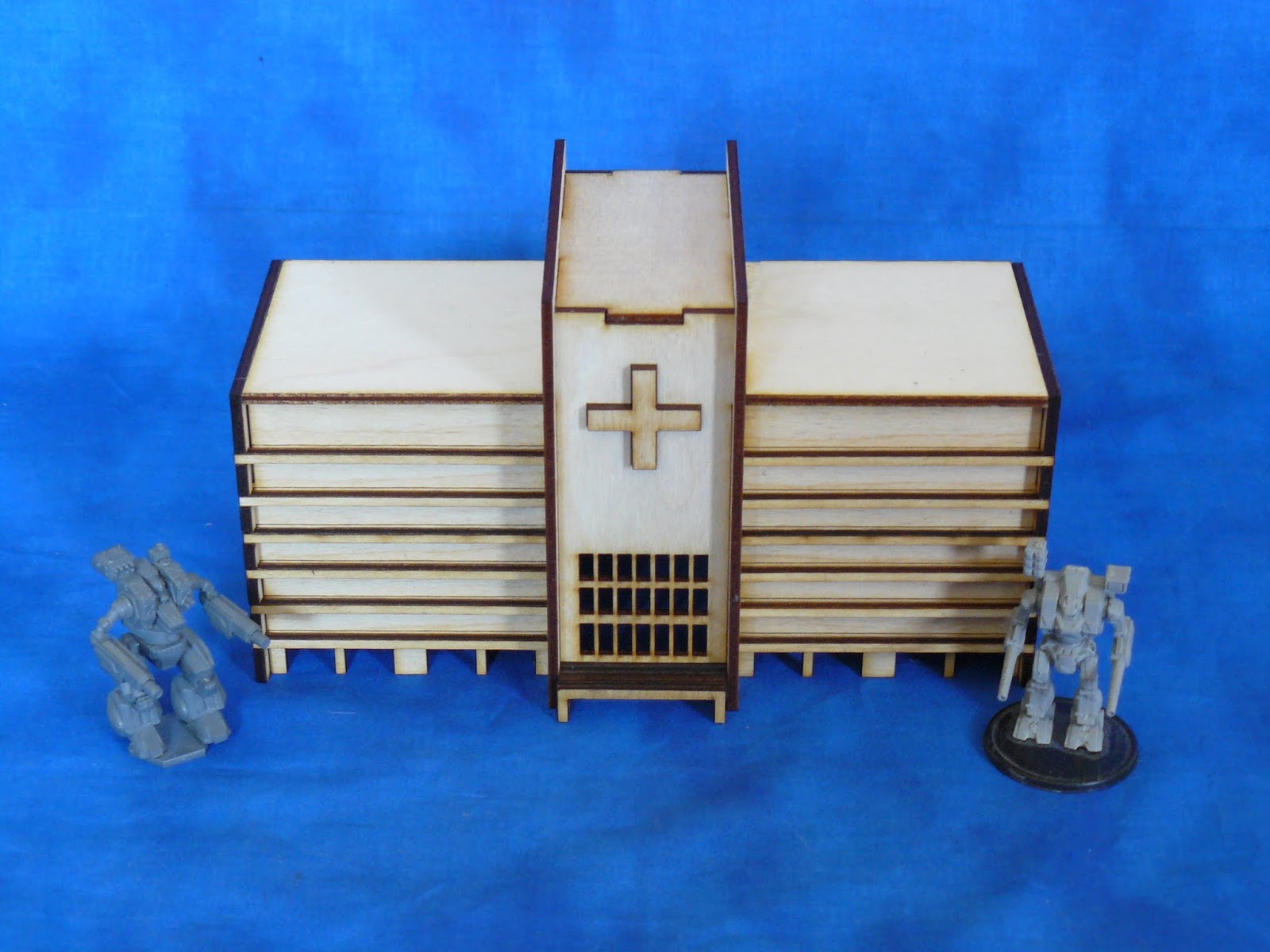 Based in the hospital from Robotech, Hunter Hospital is an imposing structure. Though not the largest it is the most recognizable making it a great objective marker in any game.